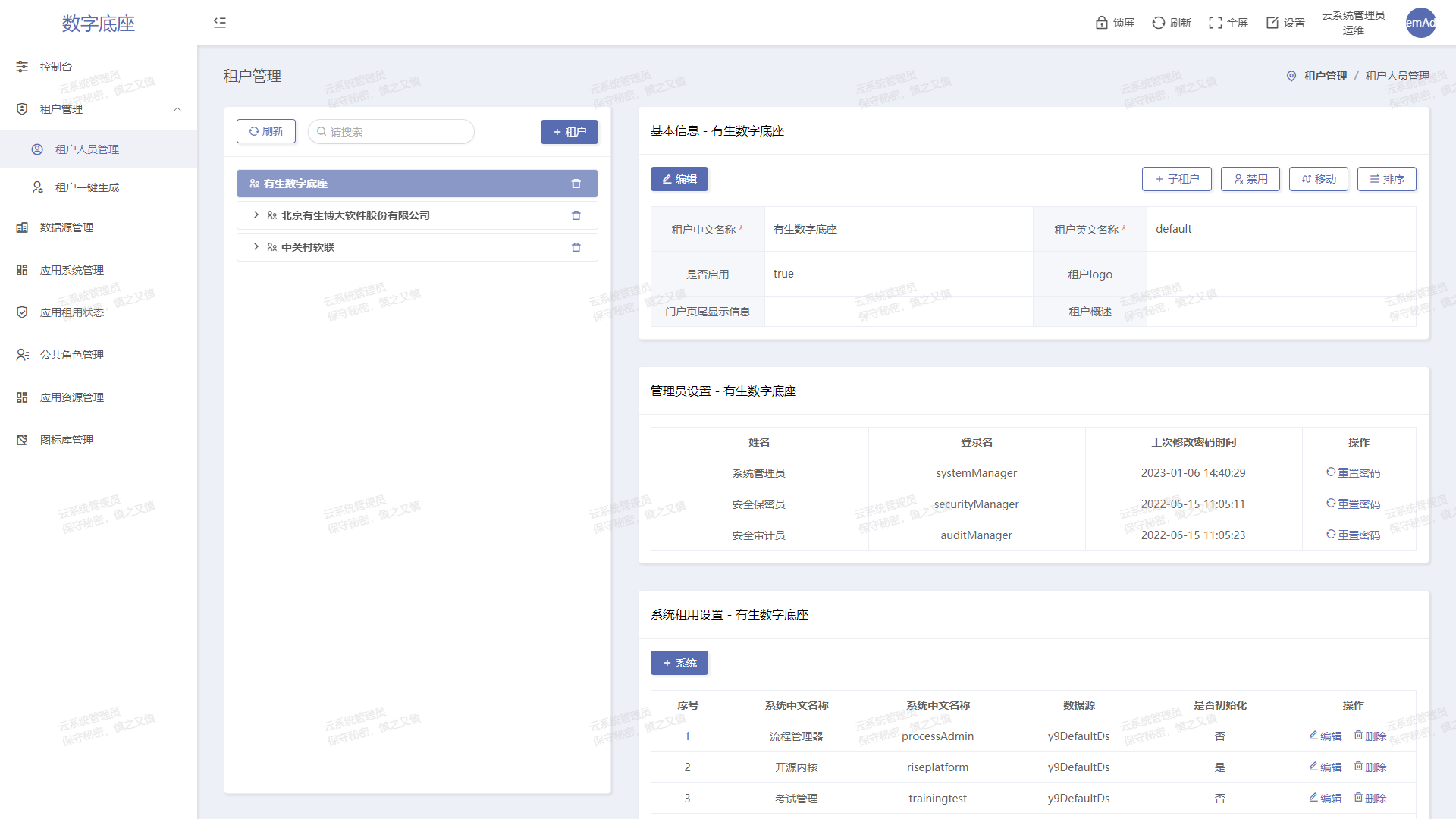 多租戶模式服務與政府單位和大型國央企,支持多級管控,權限下放。云模式以多租戶為底層,支持線上租賃服務模式開展自身業務,高效便捷。