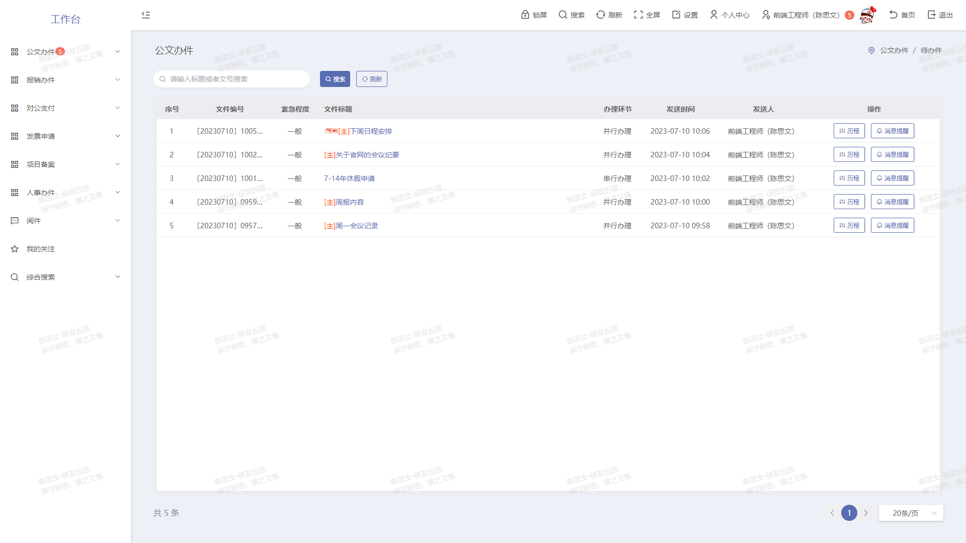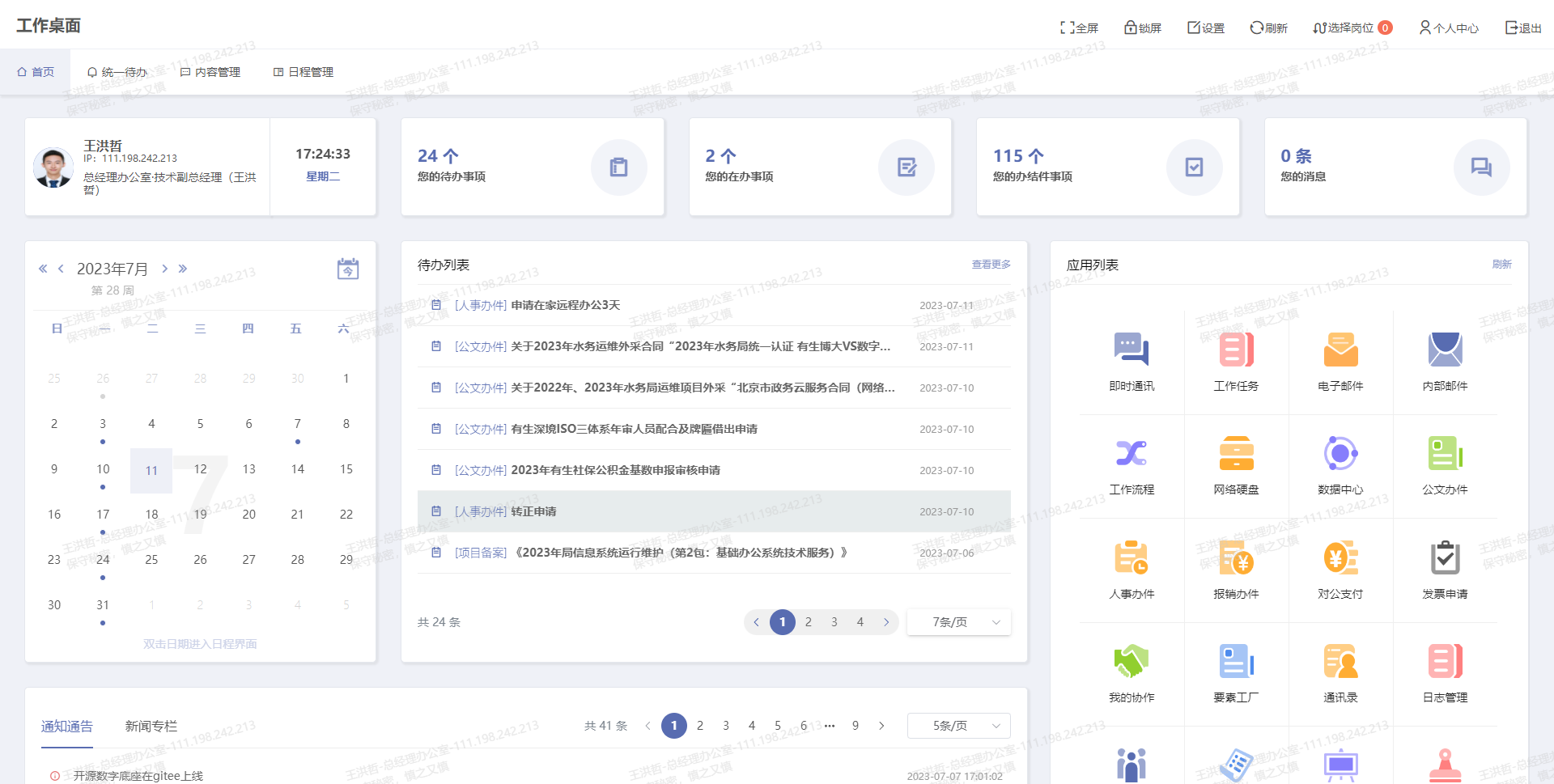 工作桌面、工作流程、即時通訊、網絡硬盤、電子郵件五大核心部件